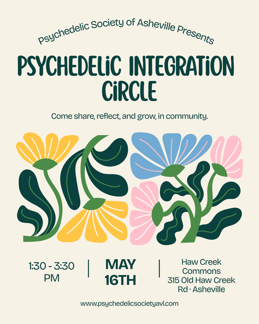 Psychedelic Society of Asheville is a community driven initiative led by an all volunteer group of experienced Psychedelic practitioners, researchers, and advocates. We believe the time is now to rehumanize the mindful exploration of psychedelics, and honor the profound healing and transformational power countless studies and ceremonial traditions have affirmed. We thank you for your commitment to your own health and well-being and appreciate you being a part of our blossoming community!